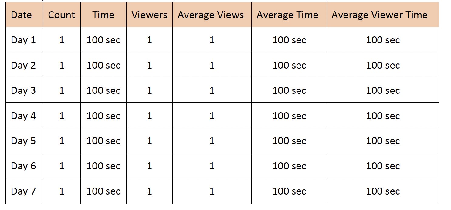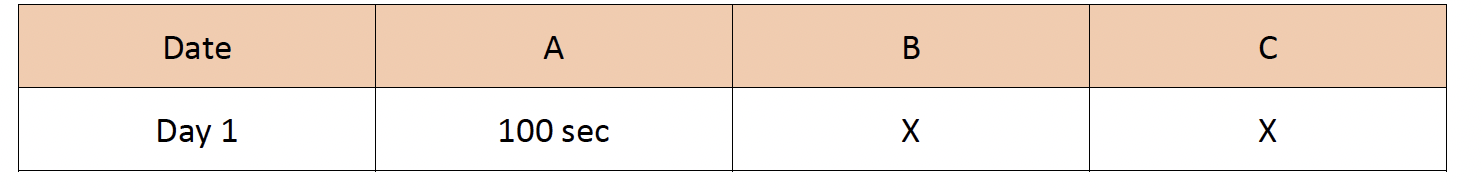 There are three distinctive viewers A, B and C and their uses of a feature over a 7-day period is as follows: