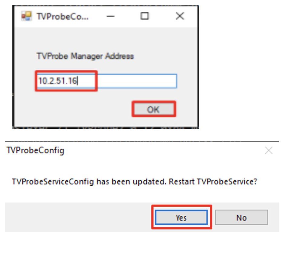 ●When prompted for the “TVProbe Manager Address”, enter the IP Address of the server hosting the “TVProbe SP Console”.