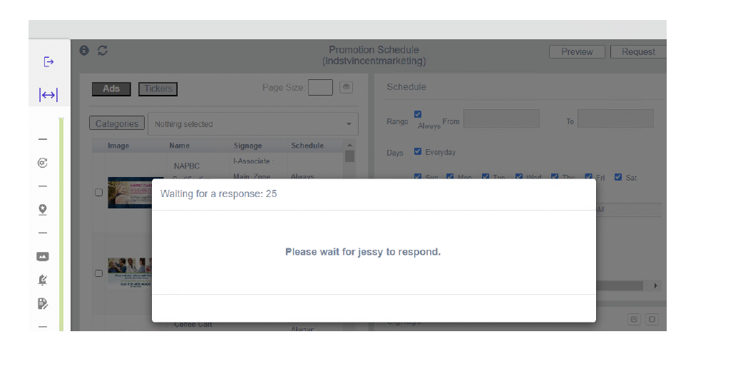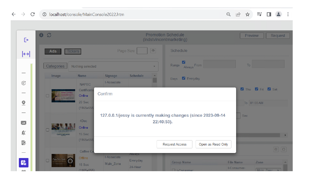 ● Bill opens Promo Schedule console in multiple PCs at the same time