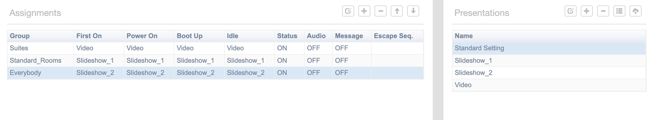 Otherwise if the STB is a member of the "Standard_Rooms" group, it uses the "Slideshow_1" settings