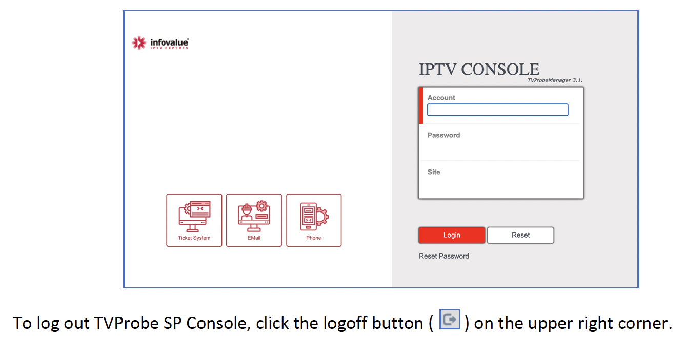 1. Navigate a web browser to http://<server_ip>/tvprobesp, where <server_ip> is TVProbe