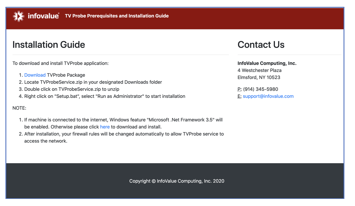 1. Navigate a web browser to http://<server_ip>/tvprobeinstall, where <server_ip> is